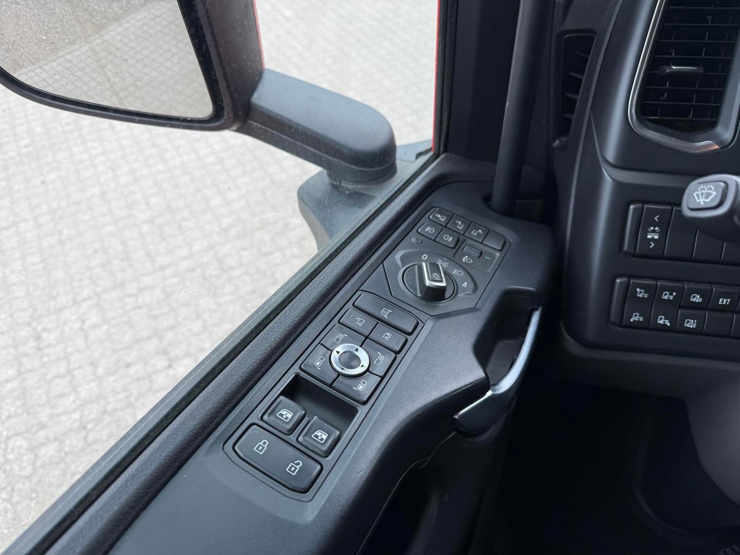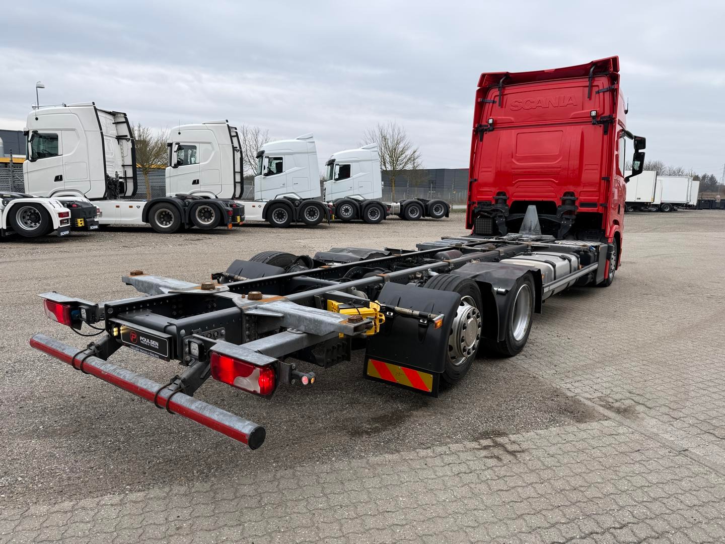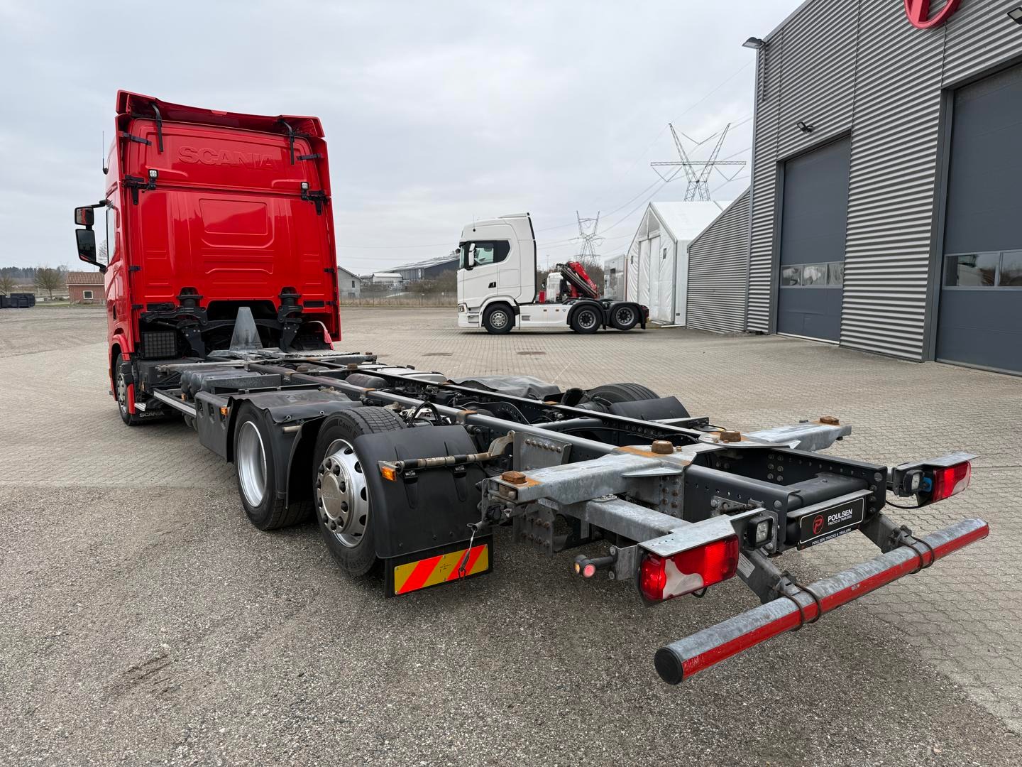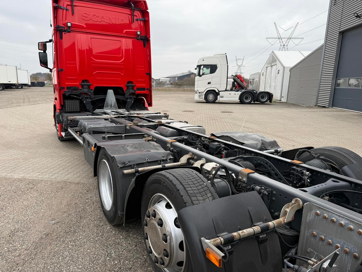 Kabinen CR20 H - 2 køjer - kabinevarmer - klimaanlæg - luftaffjedrede sæder - radio - walkie - køleskab - sporassistent, lastindikator, ACC og adaptiv fartpilot - Scania stand klima / air cooler - fabriks lakeret førerhus i Spicy Red (RAL3020 CM)