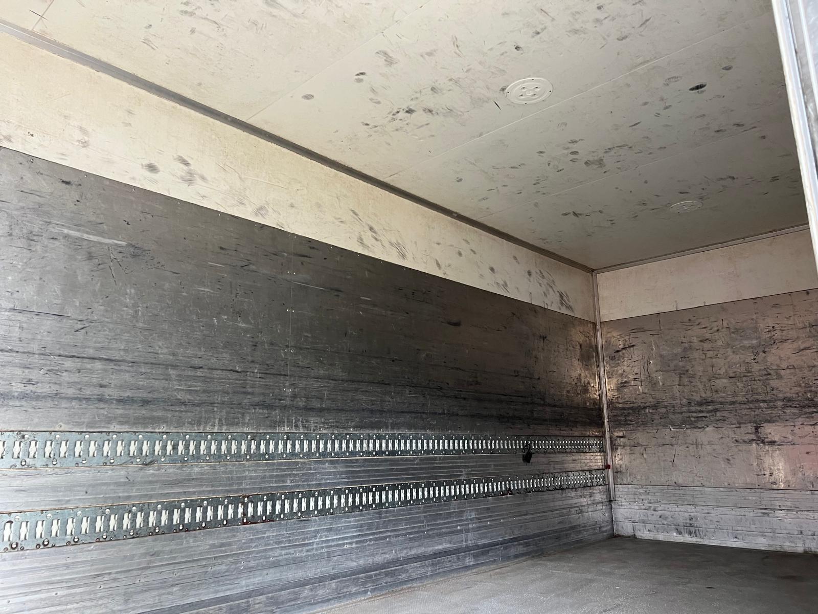 Indvendige ladmål ca. : L 6110 x H 2390 x B 2450 mm kasse - 2 binderækker - finerladbund med alu plade oven på - højre sidedør