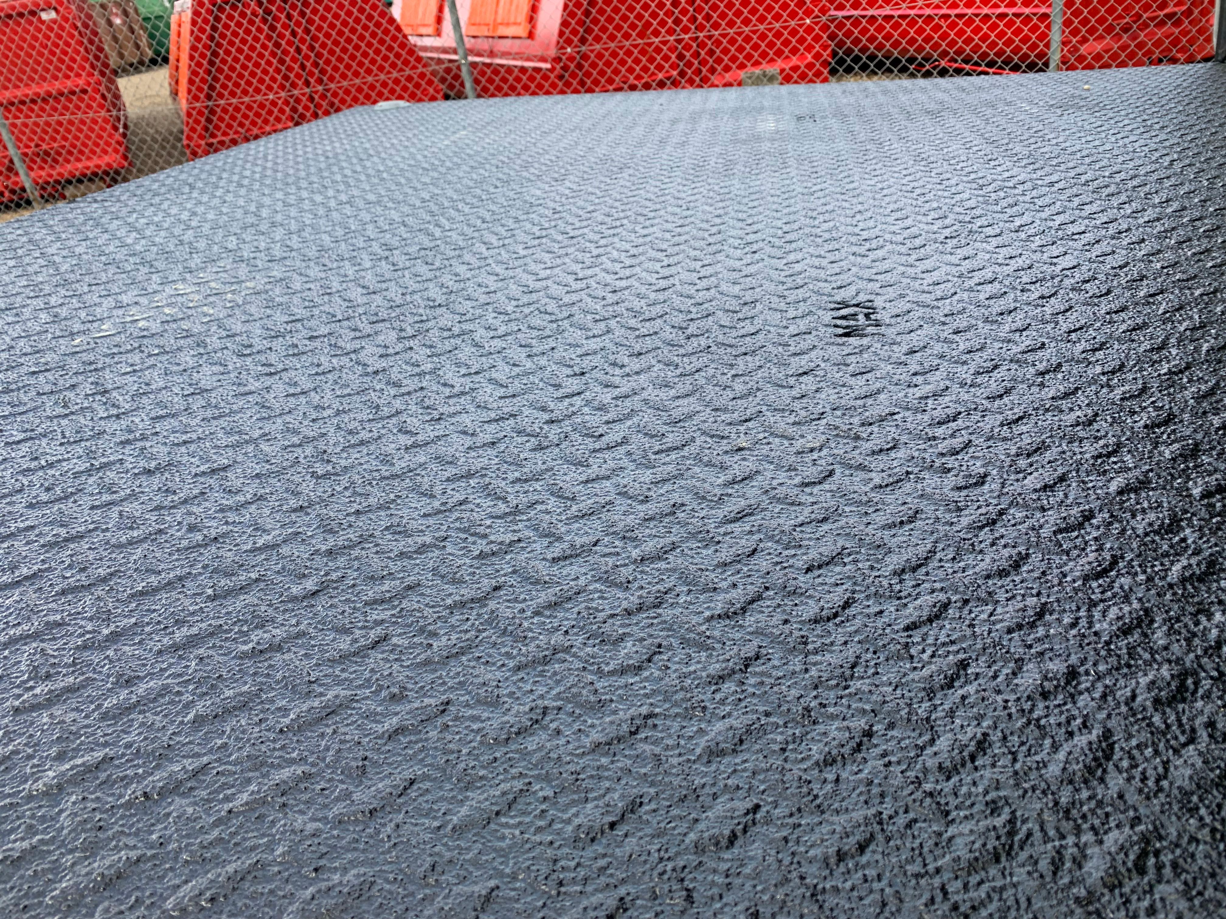 - 30 mm finér bund (tåler kørsel med 7-tons truck) - 5 rækker træplanker mellem skydestolperne