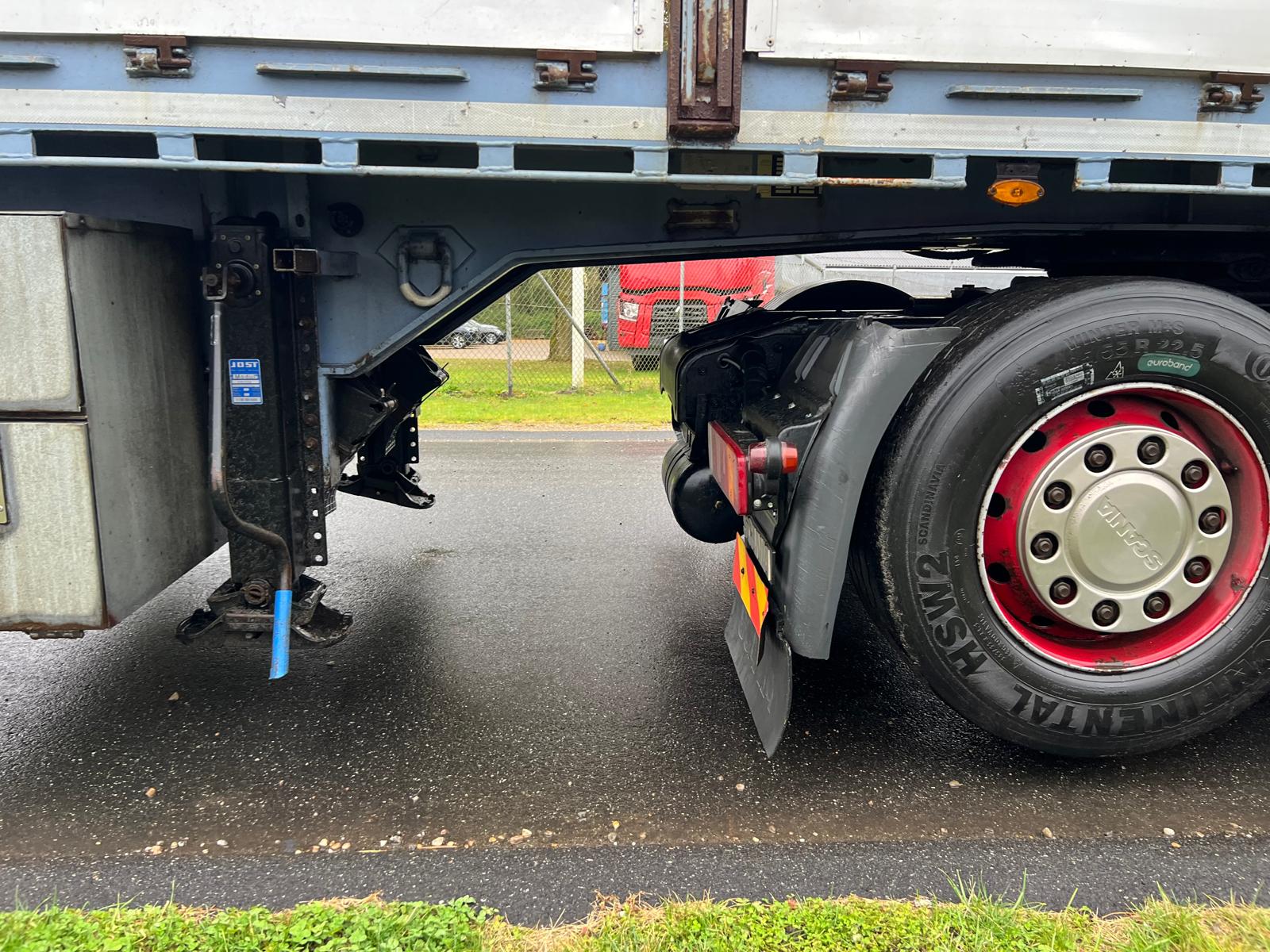 BPW aksler - Tridec mekanisk tvangsstyret 3. aksel via trækkerens skammel - aksel løft på 2. aksel - tromlebremser - luftaffjedring -