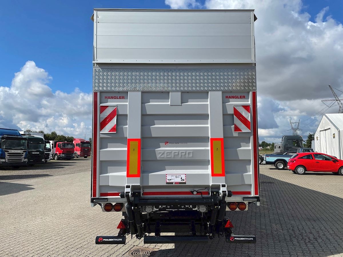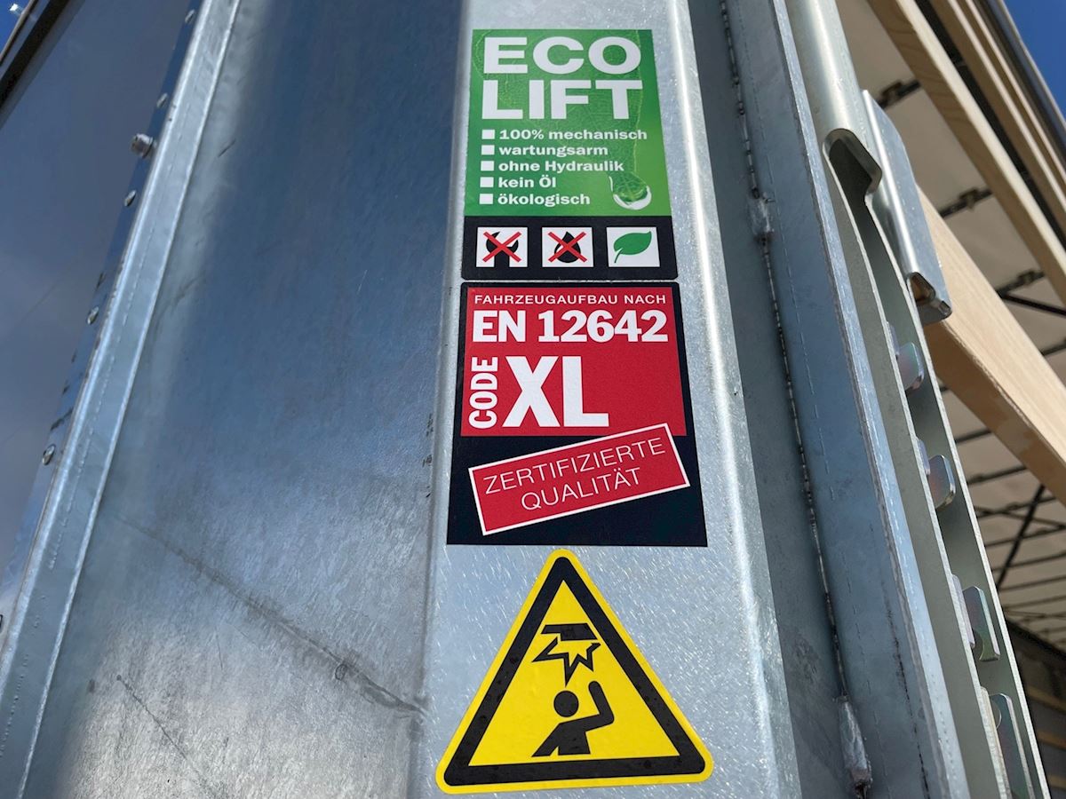 Opbygget med: SAF aksler med tromlebremser - 385/65 R22,5" M+S "3PMSF" godkendte dæk - Zepro 2.500kg lift inkl. fjernbetjening - 2.000mm stålplade med LED blitzblink - Alu-topklap vil blive monteret ovenfor liftpladen - EcoLift hævetag som kan hæves ca 350 mm i hvert hjørne via gasdæmpere, topklappen følger med op i denne proces - hel-galvaniseret chassis - XL-Godkendte gardiner (Code 12642)