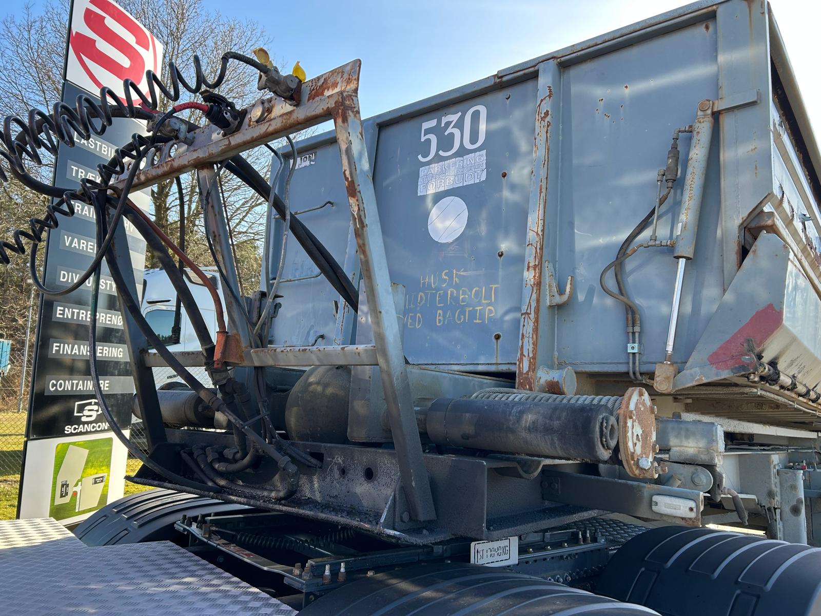 Tilhørende Jøni pendel hejselads container indvendige mål ca. : L 8600 x B 2350 x H 1200 mm - ca 24 m3