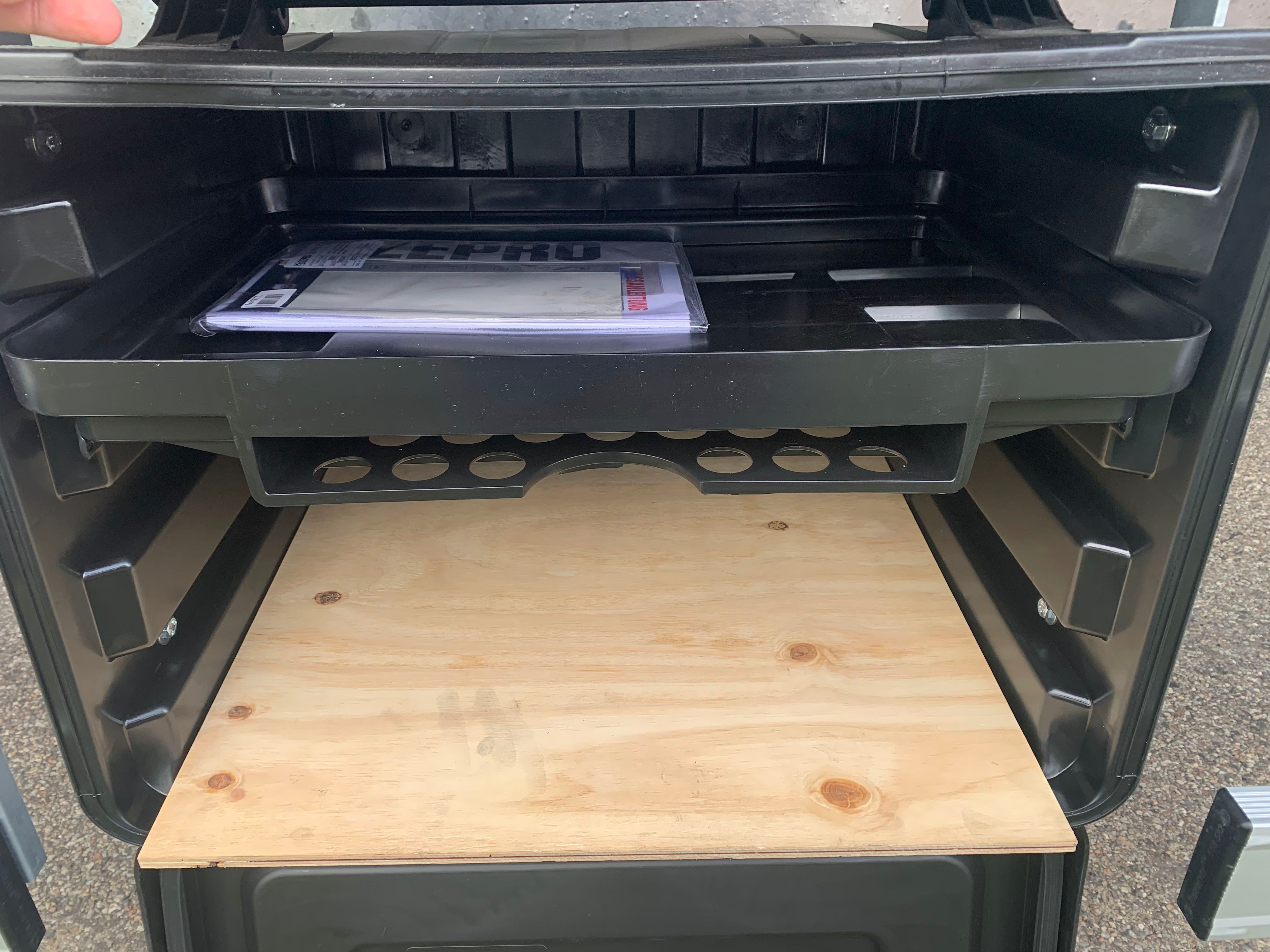 - 1 stk. plastik værktøjskasse - dokumentboks på forvæg