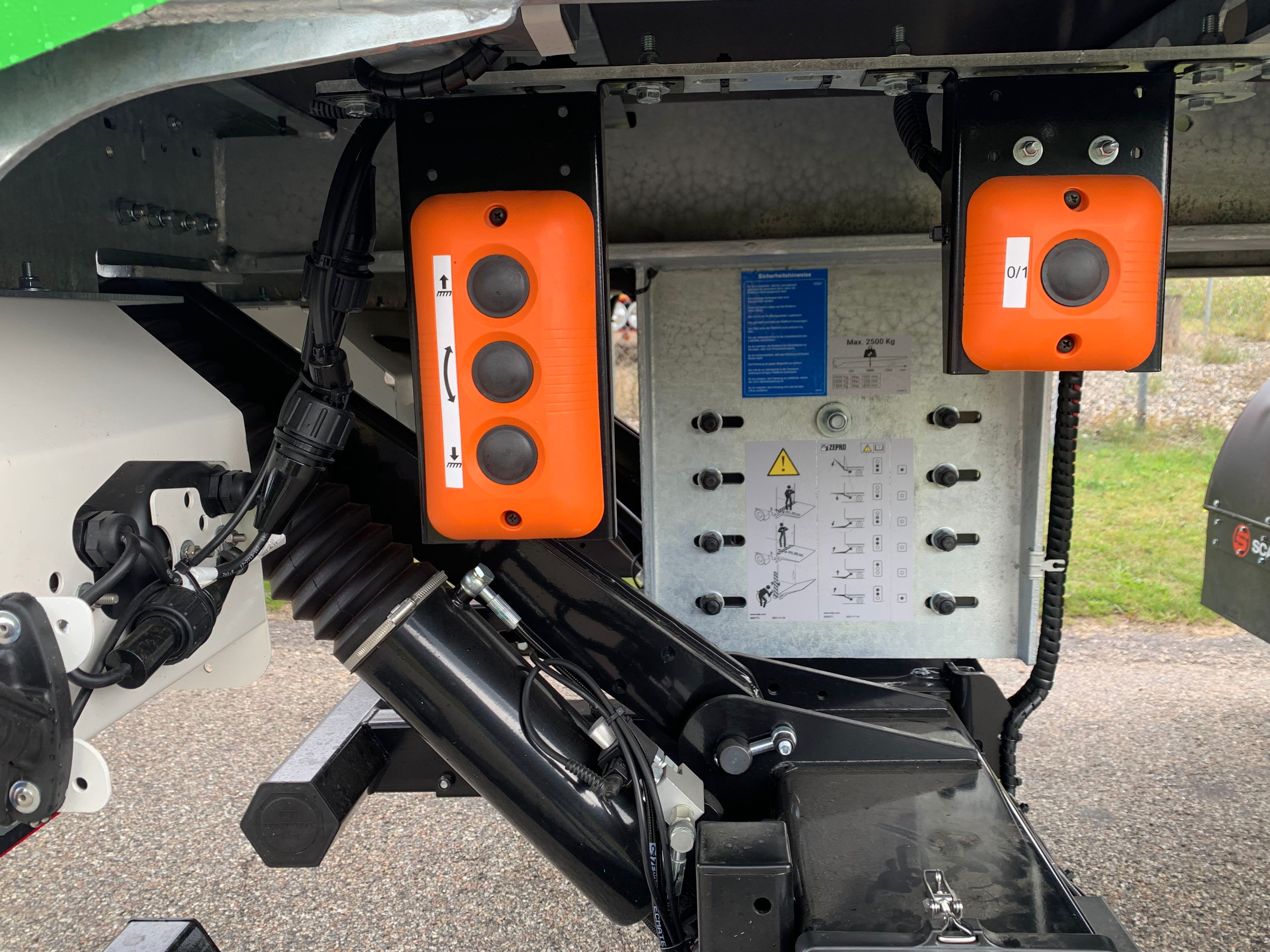 Hangler 2 akslet city gardintrailer med 33 pallers bl.a. Zepro 2500 kg Z 2500-150 MA lift med 2200 mm stålplade i DB 7050 Novagrau - SAF aksler - tromle bremser - luftaffjedring - akselløft på 1. aksel - drejbar 2. aksel - central smøreblok til smøring af hele drejekransen - LED baglygter - 2 stk LED baklygter i bag + 2 stk LED baklygter ved støtteben - plast værktøjskasse i venstre side