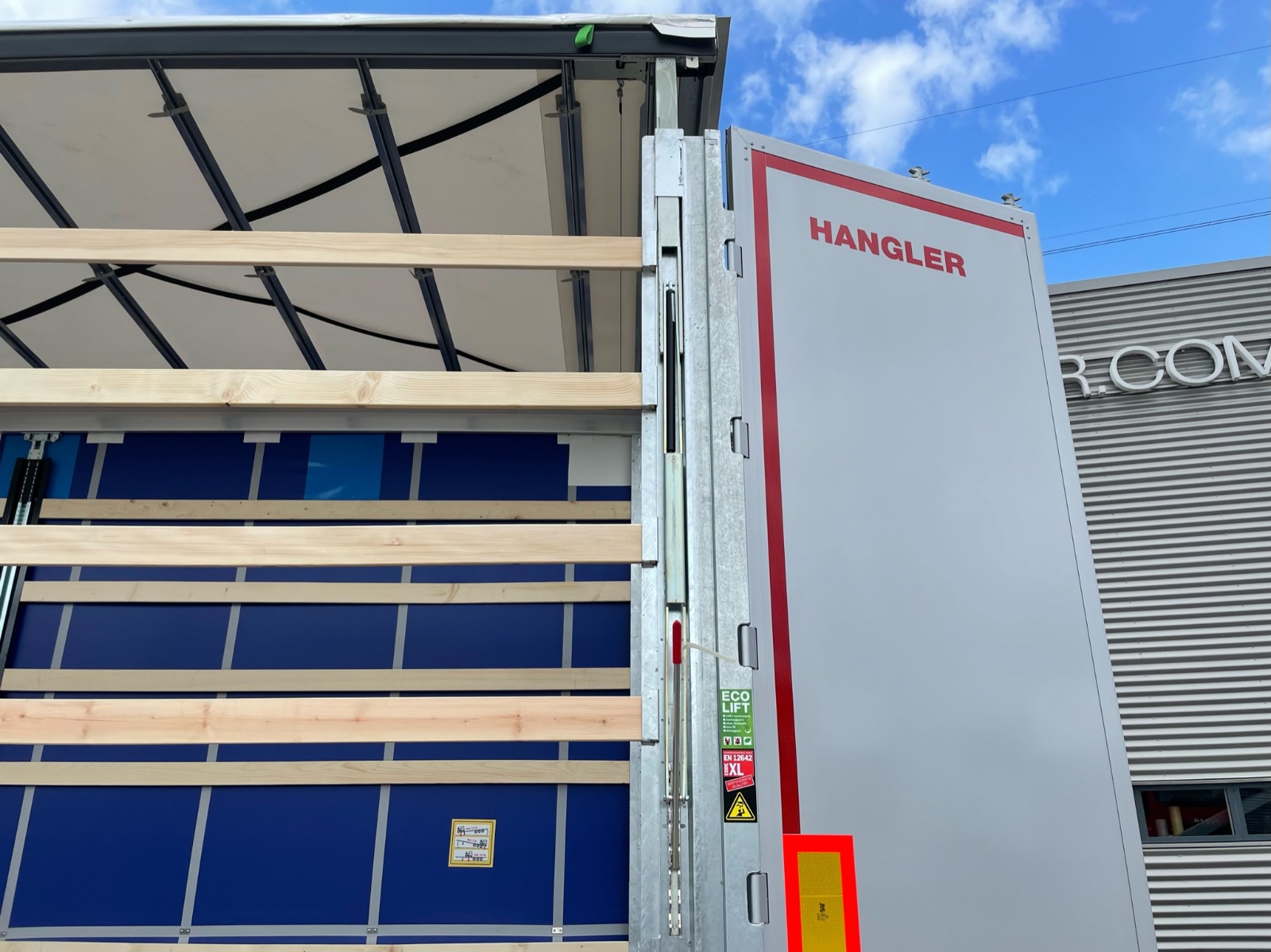 Vi kan også tilbyde ny 3 akslet Hangler Nordic model trailer med bagaksle trukket bagud og selvsporende 3. aksel eller en nyere brugt 13,6 mtr gardin trailer