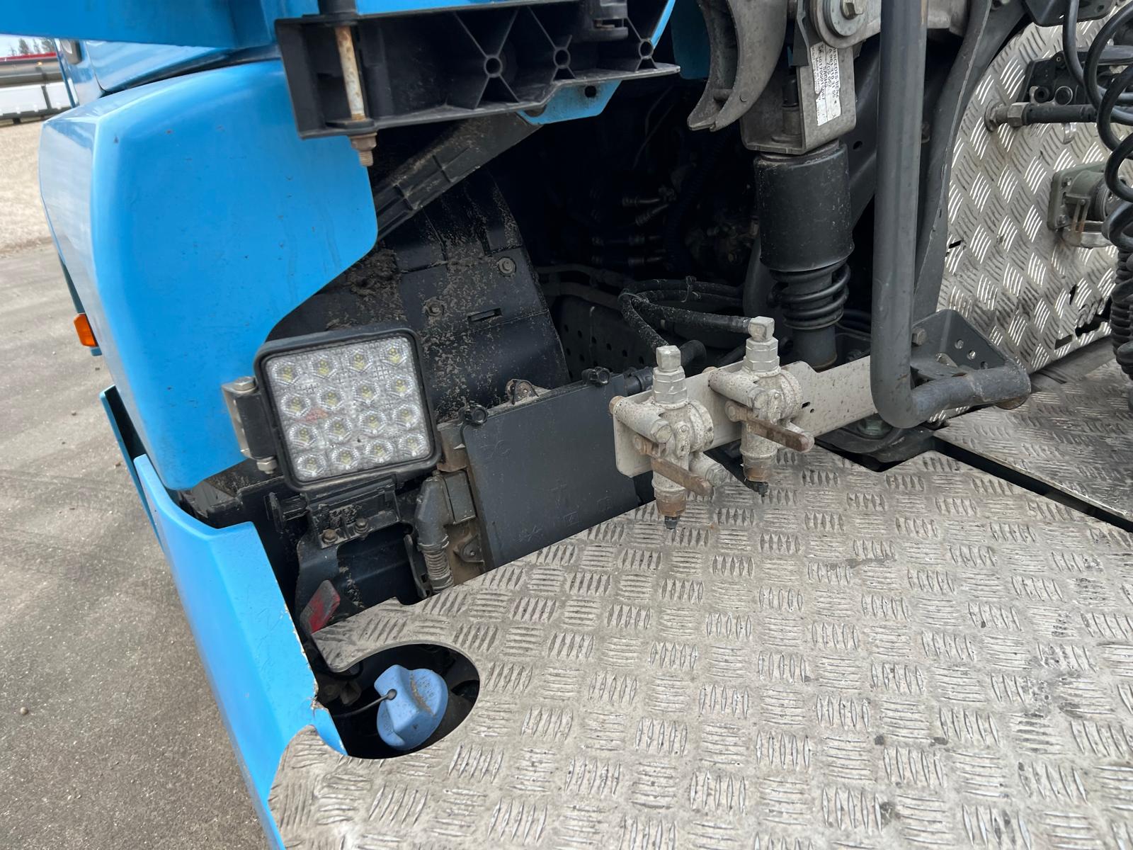 Fast skammel med skammel højde 1120 mm - spærre haner til luft slanger - stor alu afdækning over chassis - chassis skørter - 24 volt strøm stik til trailer - ca 500 ltr. dieseltank
