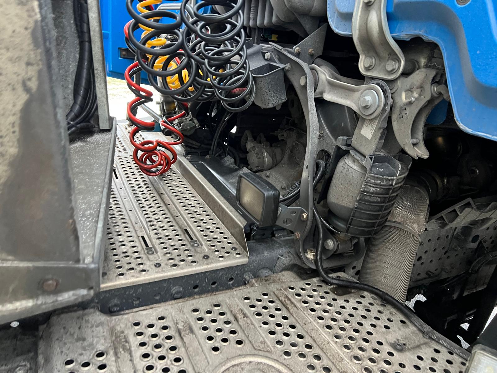 Fast skammel med skammel højde 1150 mm - spærre haner til luft slanger - chassis skørter - 24 volt strømudtag til trailer - 720 ltr. dieseltank i combitank med ABD Blue tank - batteripakke i overhæng bag