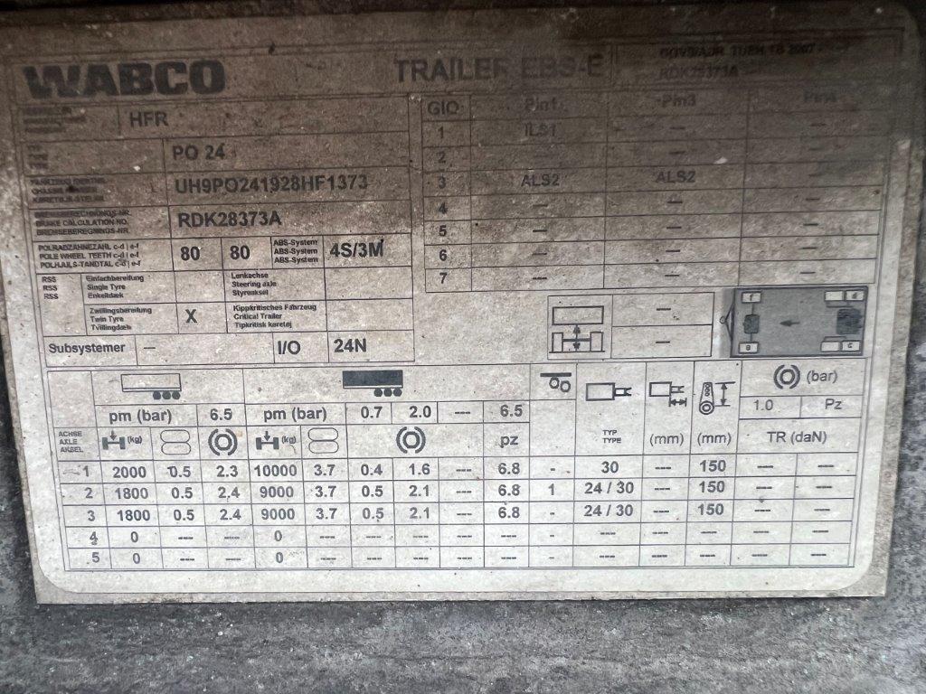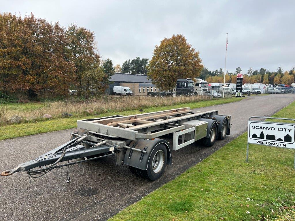 BPW aksler - Luftaffjedring - Tromlebremser - Akselløft på 2. aksel - Værktøjskasse med indbygget hæve/sænke ventiler til luftaffjedringen  - Galvaniseret chassisramme - Færgekroge monteret på chassis  - Forskydelig trækstang med 57 mm trækøje - KBL = min 8400 mm til 8900 mm - Bemærk egenvægt på kun 4960 kg