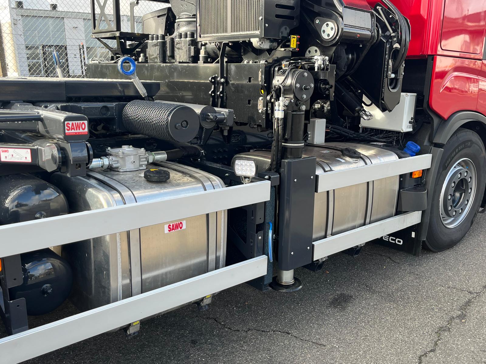 Flot Iveco opbygget med HIAB 26T kran og Sawo Wire hejs