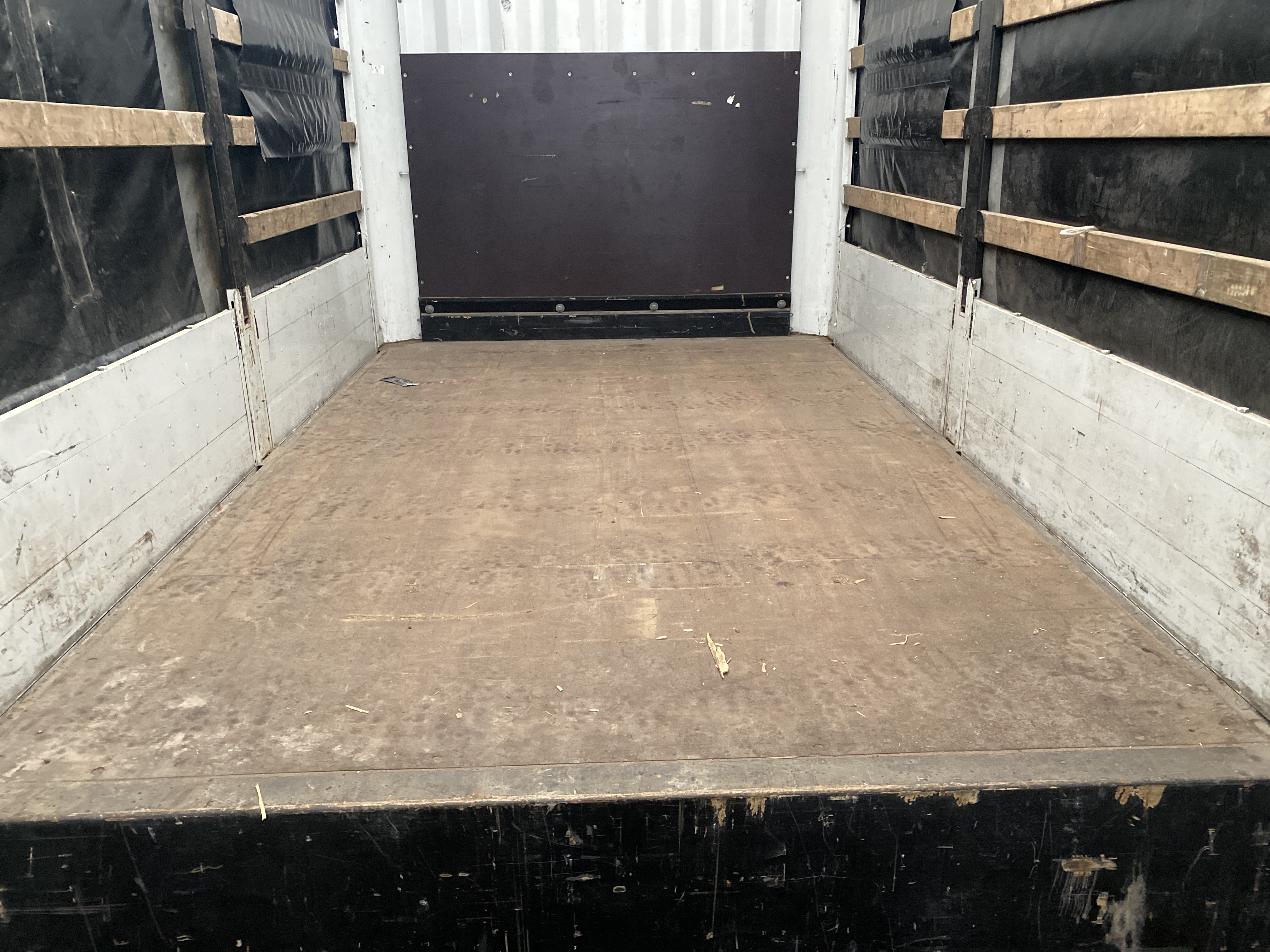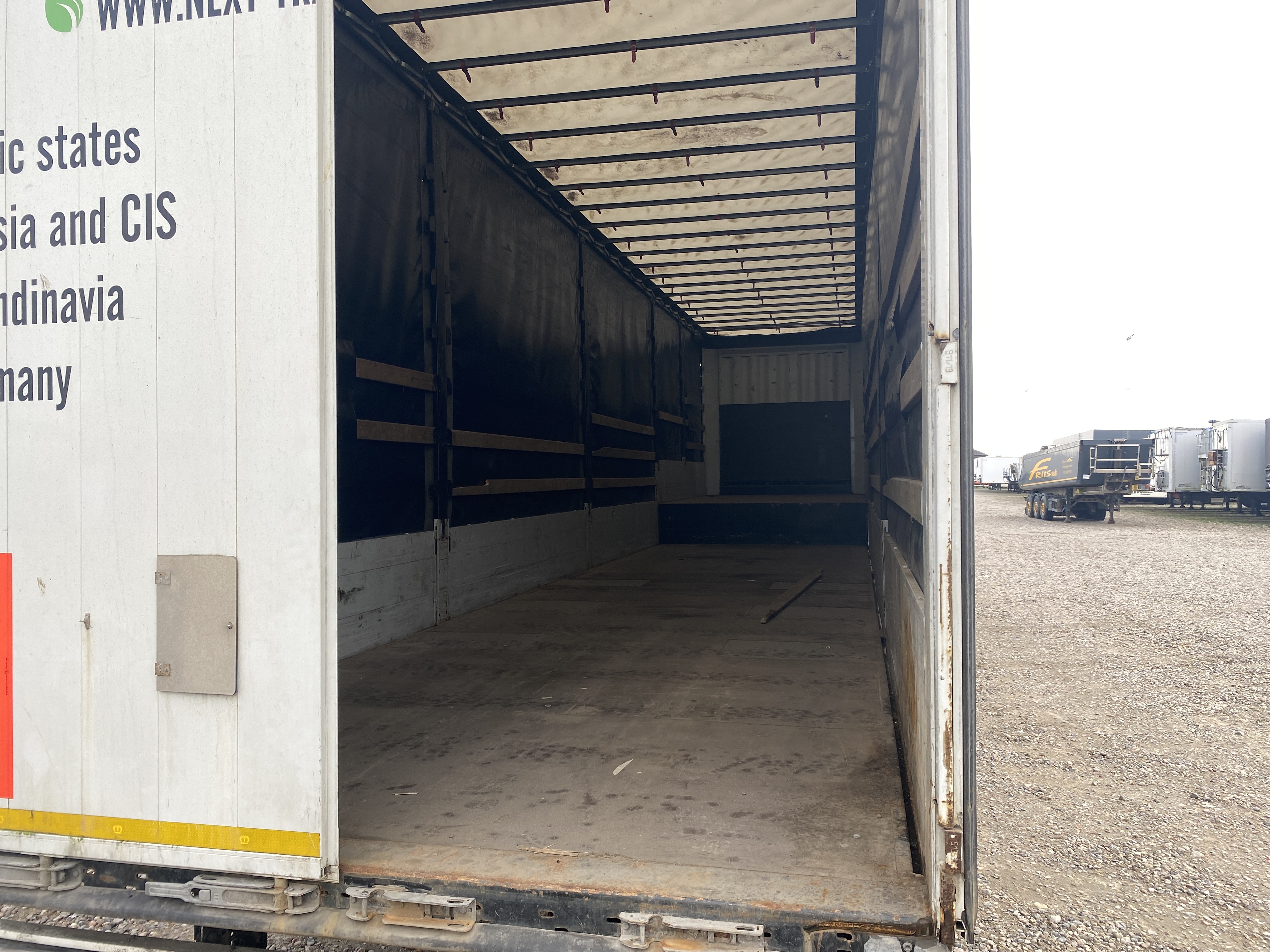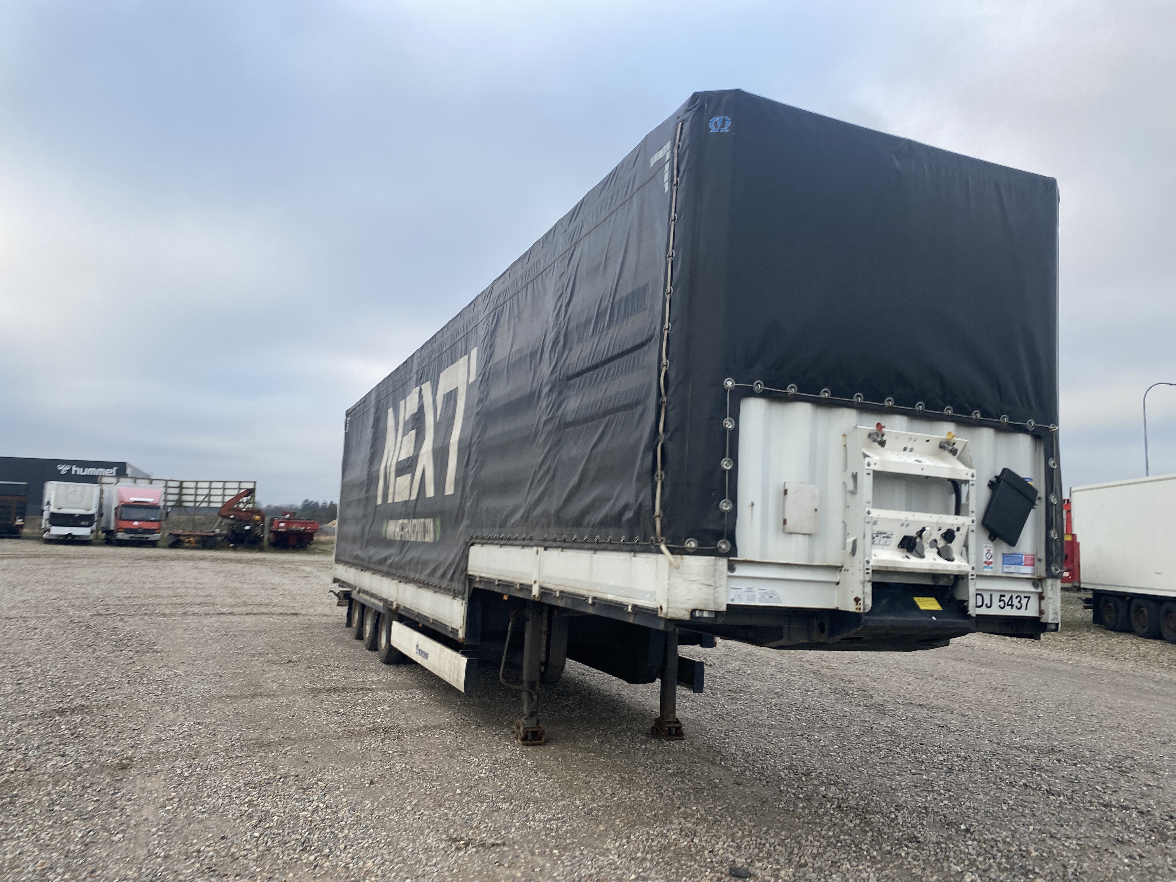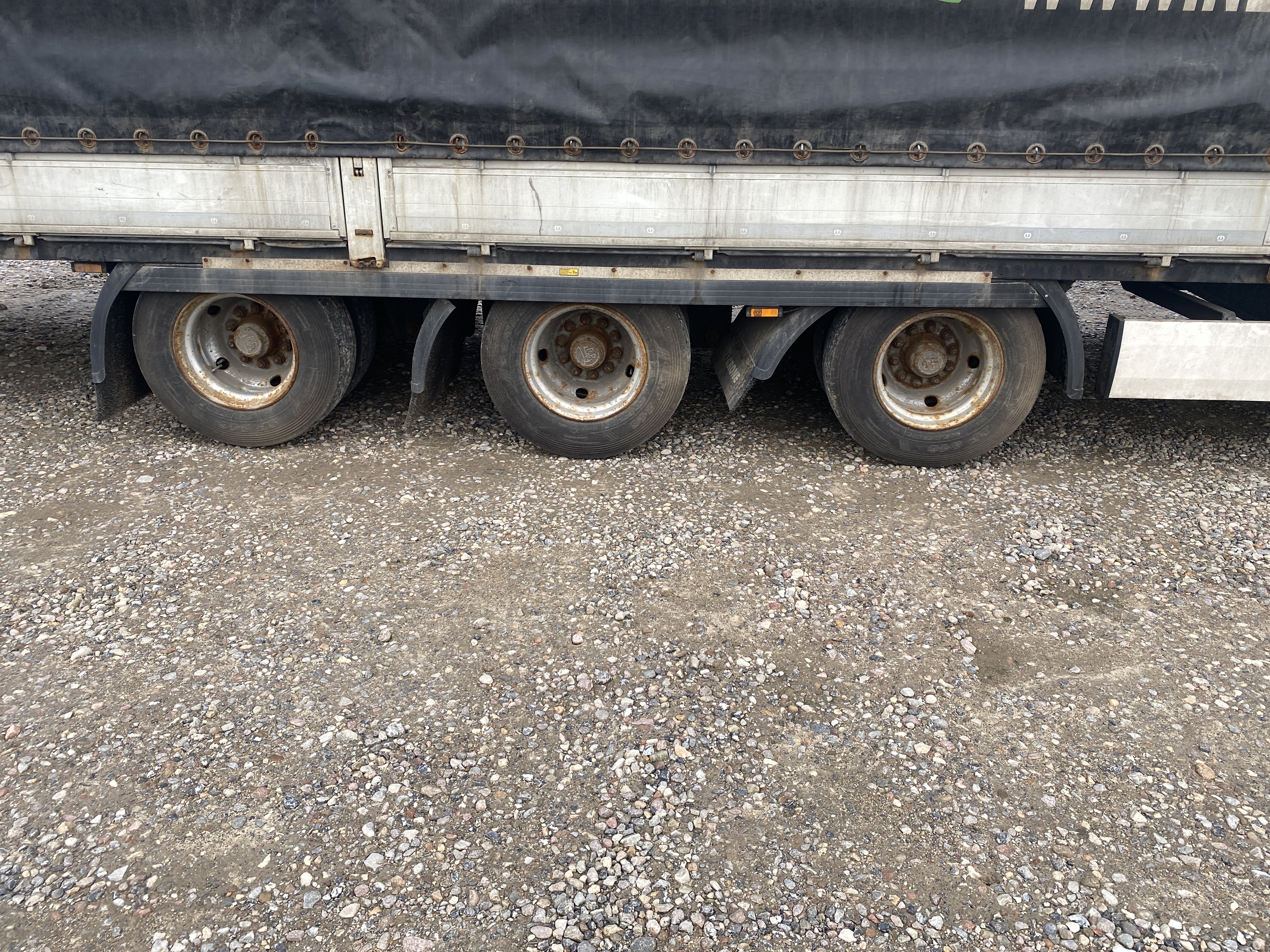 3-akslet nedbygget med presenning, hele bagdøre, skydetag. Dæk str. 235/75 R 17,5. Rapo 96 cm højde