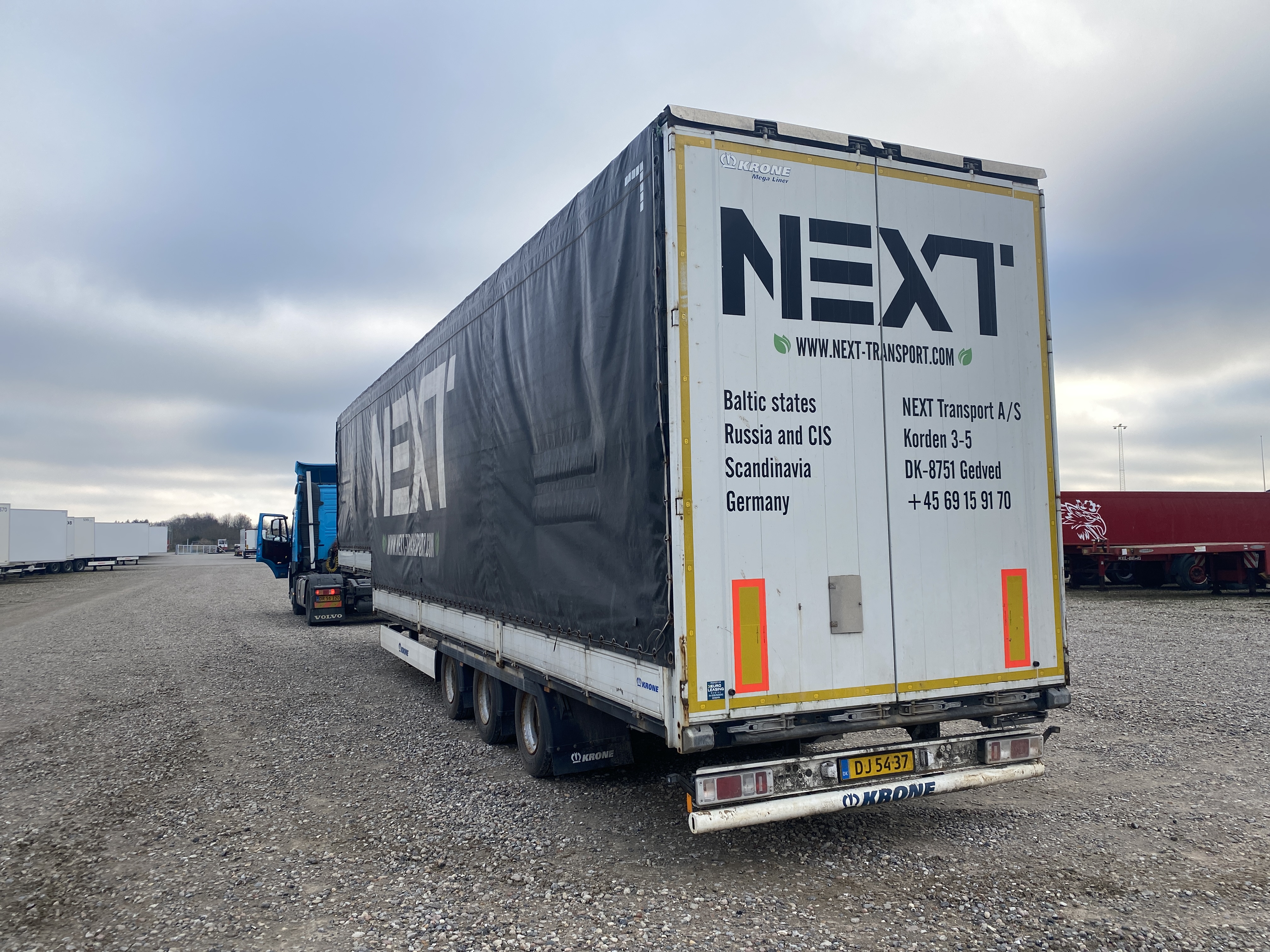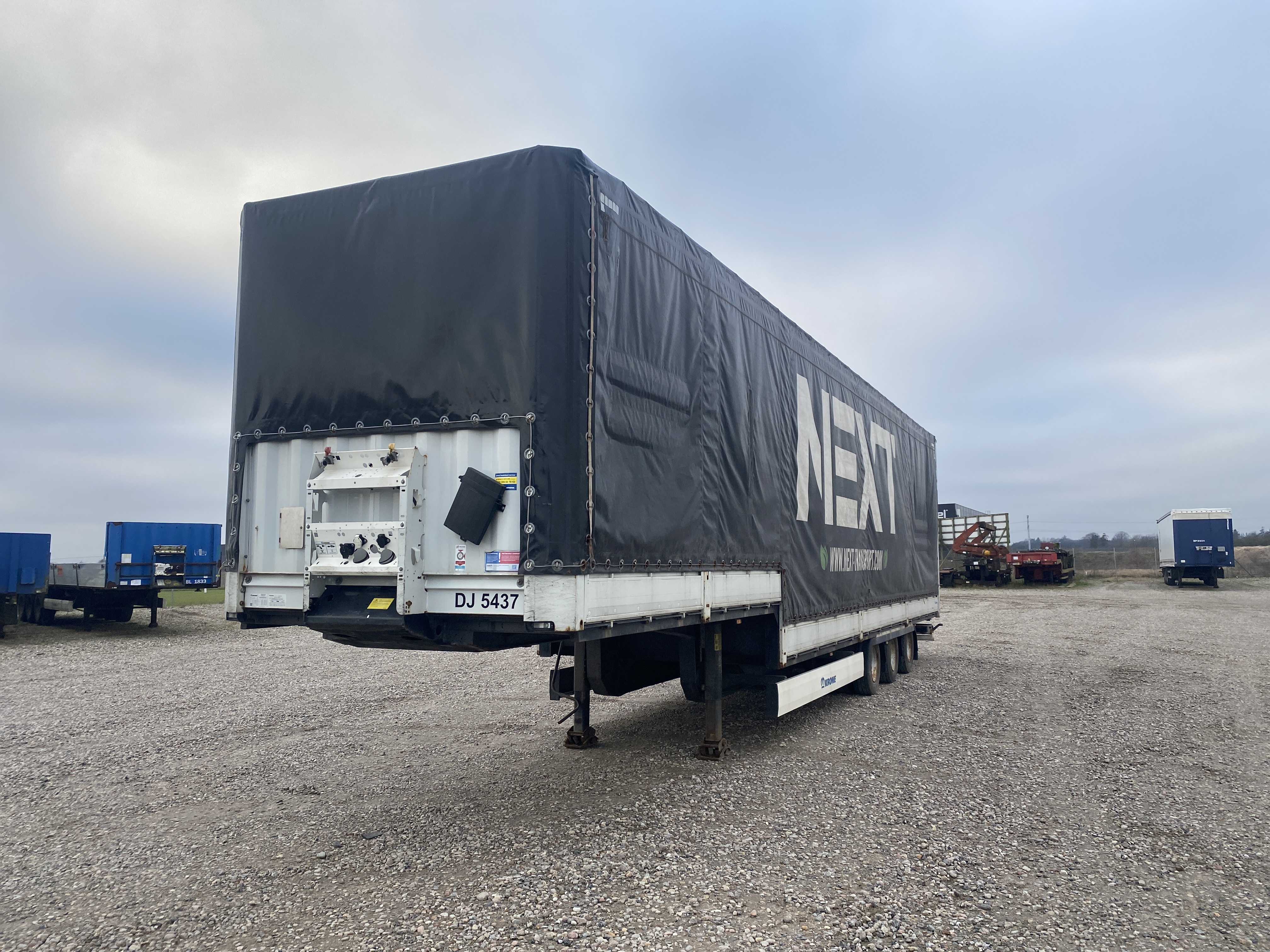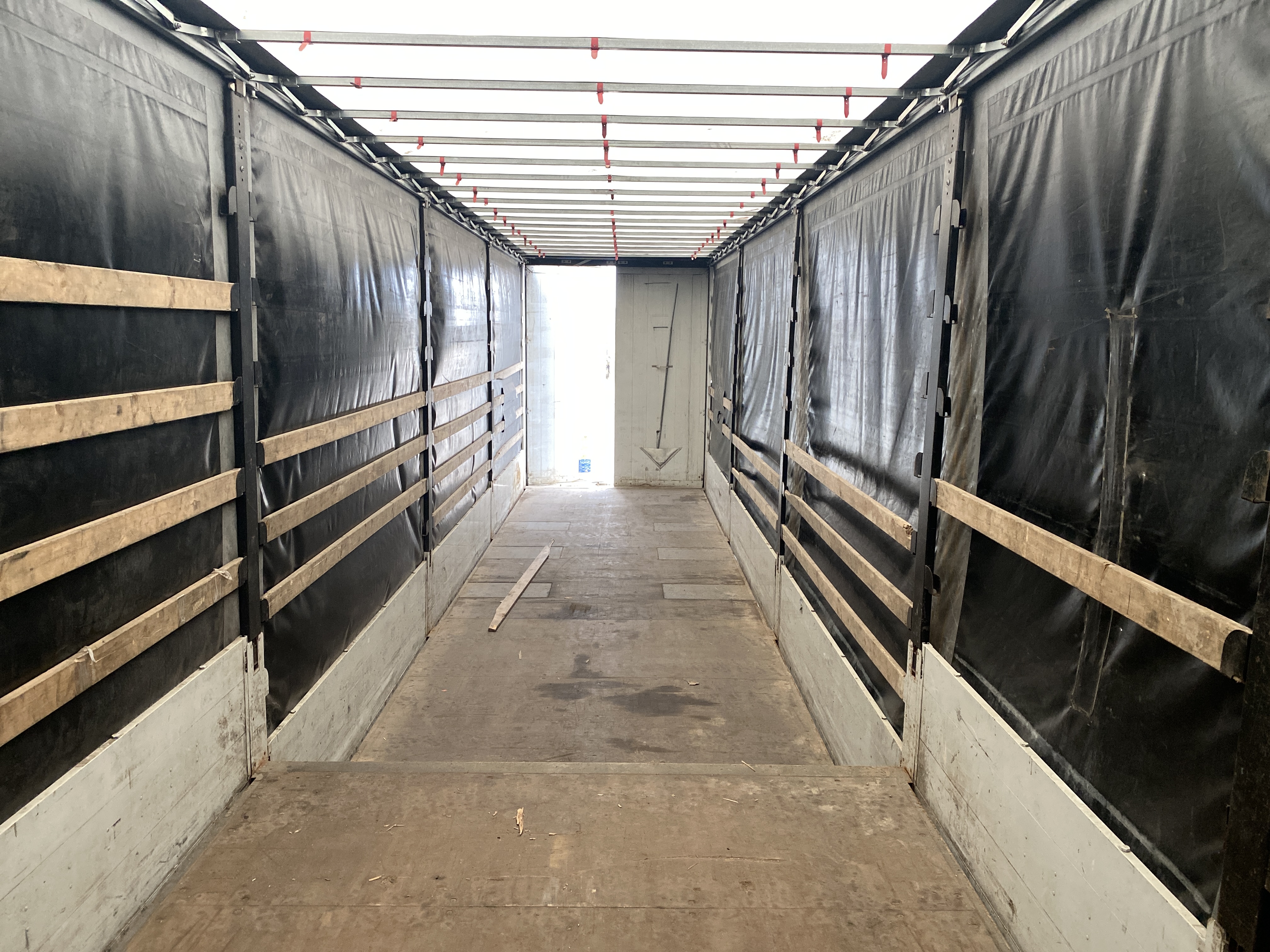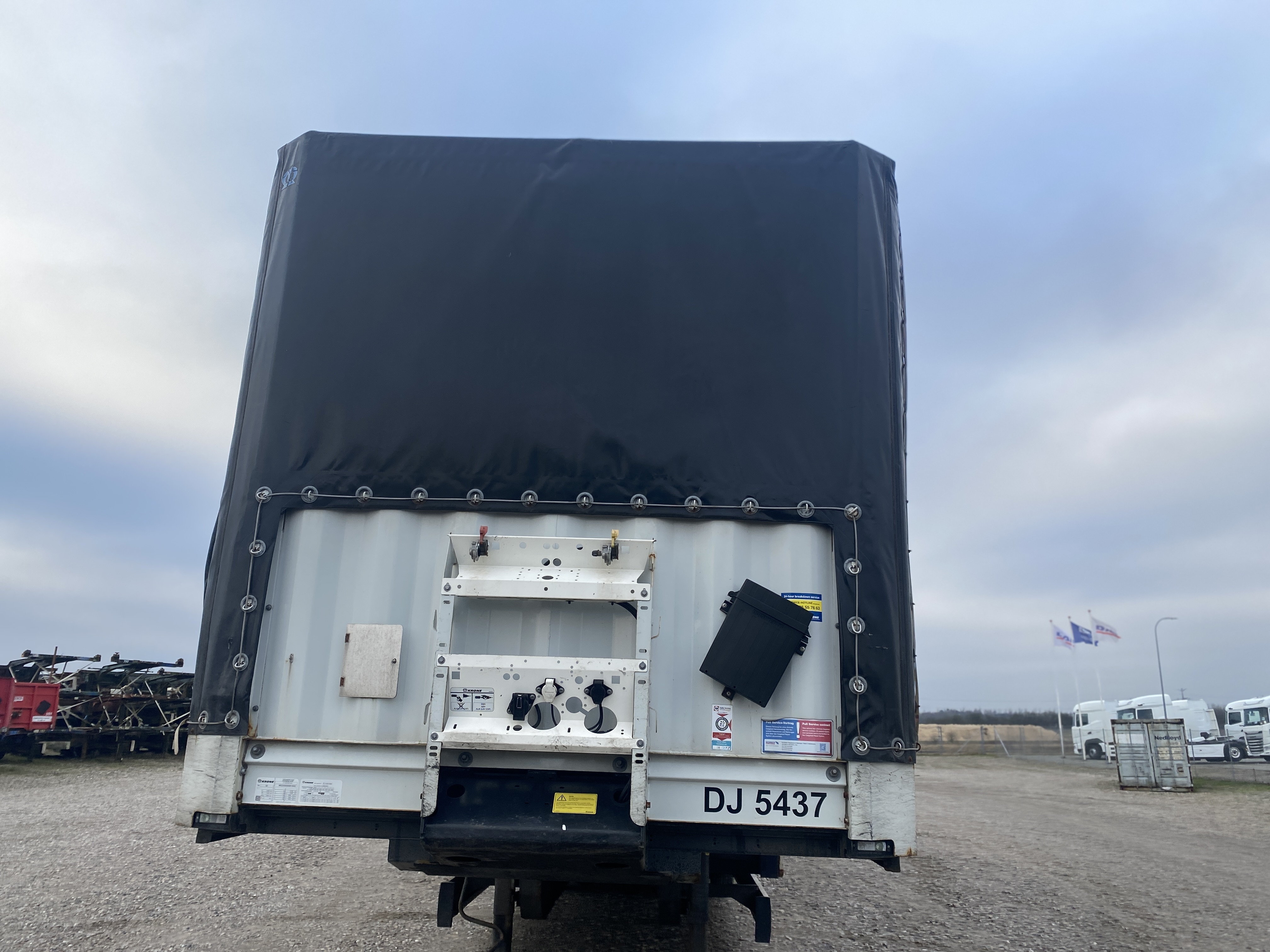 3-akslet nedbygget med presenning, hele bagdøre, skydetag. Dæk str. 235/75 R 17,5. Rapo 96 cm højde
