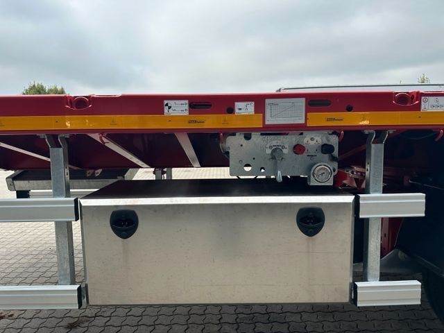 Luftfederung, 1 Liftachse, 3 x 10.000 kg BPW, Hydr. zwangslenkung, EBS Wabco, 1.600 mm verzinkte Frontplatte, Rungen taschen, Rungen, Magazin für rungen, Zentralschmierung, Container-Schlösser, + vieles mehr4 Stück auf Lager! -