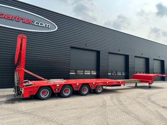 4 x 12.000 kgLuftfederungHydr. zwangslenkungVerbreiterung bis 3,2 m6.000 mm ausziehbarHydr. stütsbeine hintenDobbelt rampen /half mit eisen/kletterleistenWarnpaketRungentaschenNeu lack aussen RAL 3002