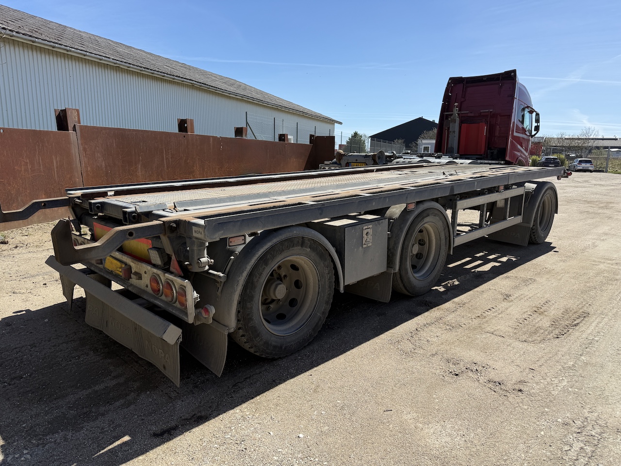 3-vejs tip, containerlængde op til 7,5 m. 4 stk. udvendige låse, metalliseret. Velholdt og klar til drift.