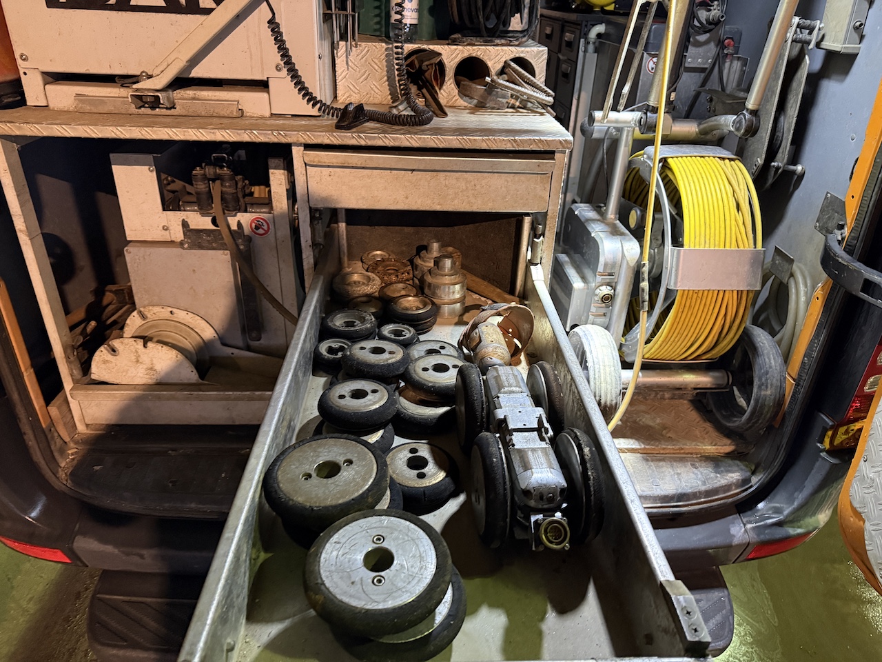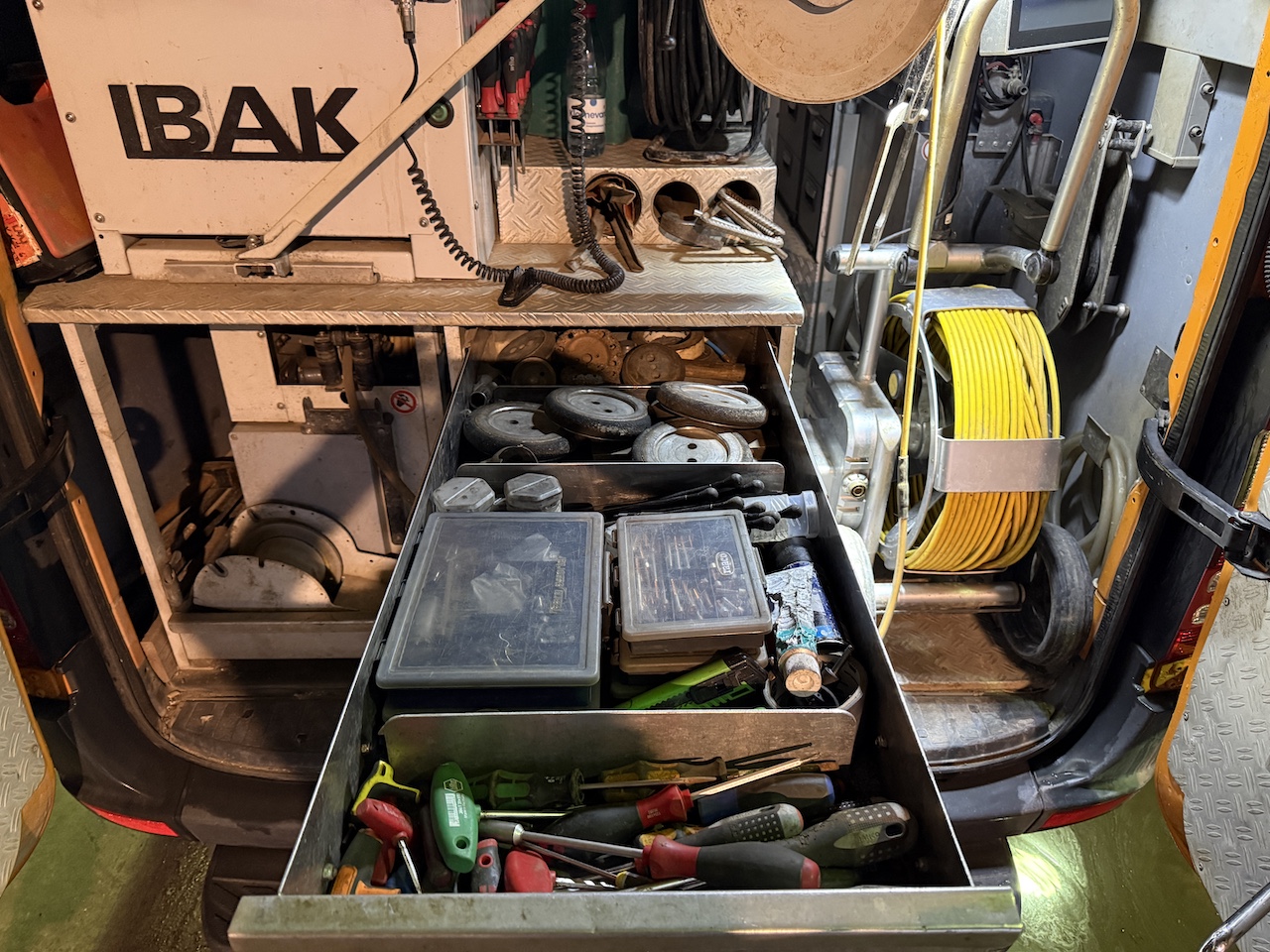 Sprinter 516CDI, Ibak-Modular, model BS5, 3-stk. traktore, 3 stk. kamera, håndskubber med kamera, kontor med skærme og pc, værksted komplet med udstyr.