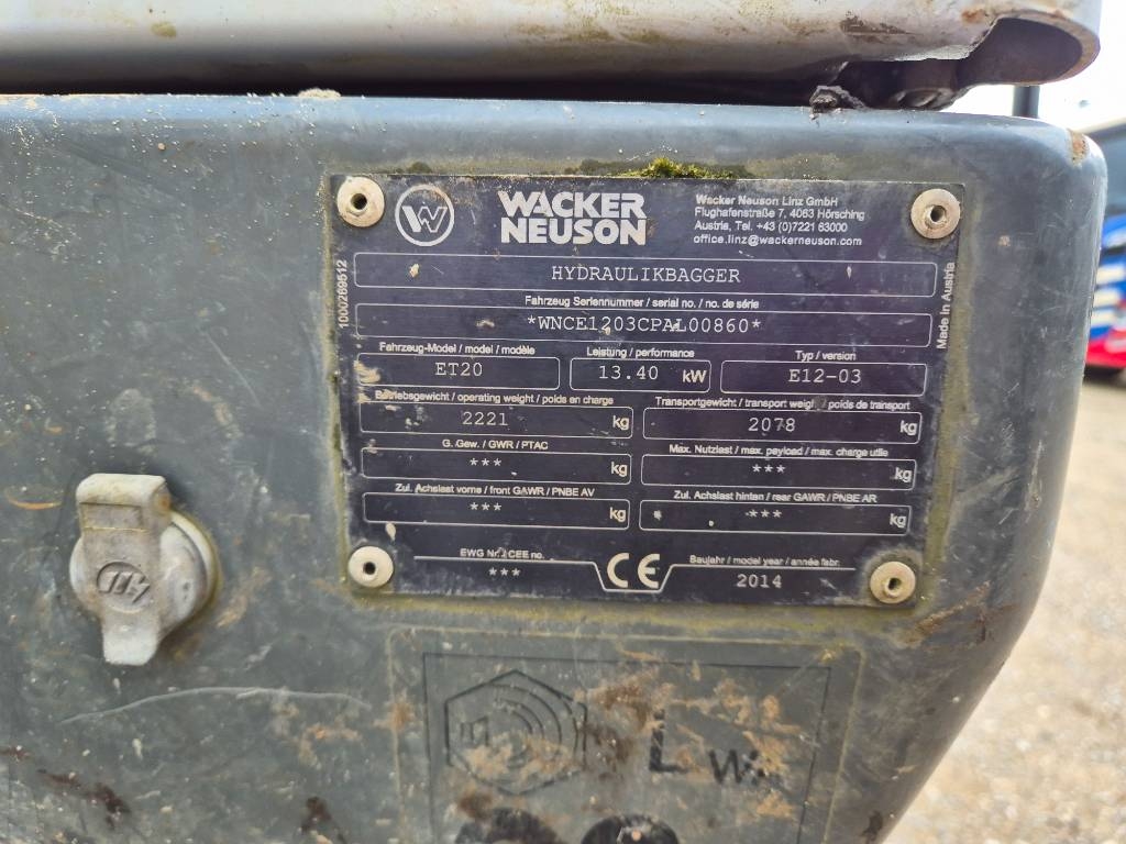 Mærke Wacker Neuson. Model ET 20 VDS // 2 buckets //. Årgang 2014.
